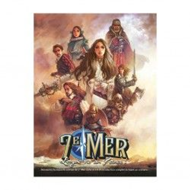7e Mer est un jeu de rôle sur table qui fait la part belle au genre de cape et d’épée, aux machinations, à l’exploration et à l’aventure. L’action se déroule sur un continent nommé la Théah, lieu de magie et de mystère inspiré de notre Europe. Les joueurs y incarnent des héros impliqués dans des conspirations à grande échelle et dans de sinistres complots. À eux d’explorer les antiques ruines d’une race depuis longtemps disparue et de protéger les dignes rois et reines de Théah de perfides assassins.